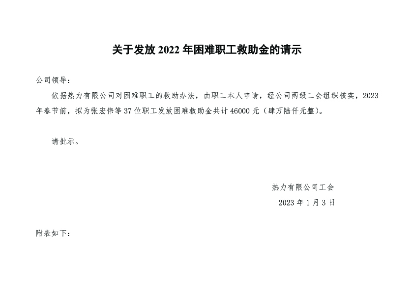 關(guān)于發(fā)放2022年困難職工救助金的請示