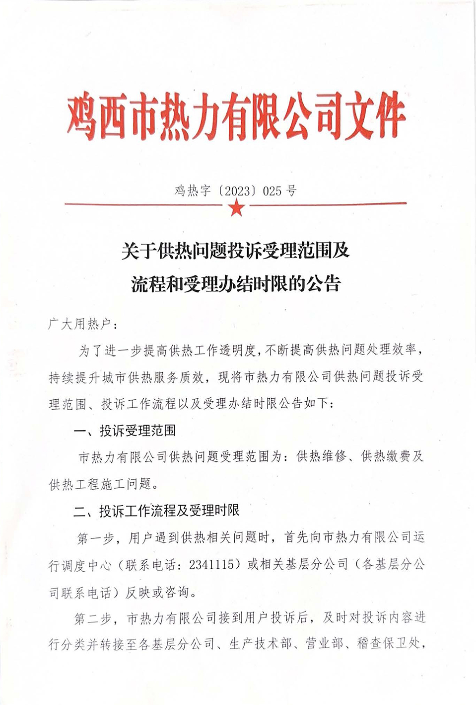 關(guān)于供熱問題投訴受理范圍及流程和受理辦結(jié)時限的公告